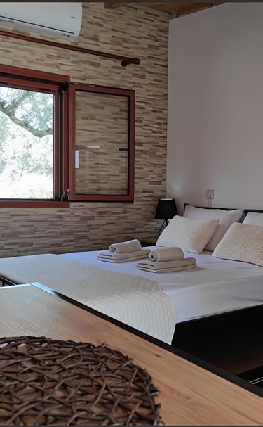 From quiet outdoor corners and comfy beds to Wi-Fi and parking, every detail is here to make your stay easy, relaxing, and full of Mani warmth.